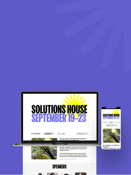 Work Solutions House website NextJS component development Component development for a Next.js based site, promoting events and initiatives in the sustainability space Client: Futerra Code + Ink My role: Front end development Key tech: Next.jsHeadless CMSSass & CSS